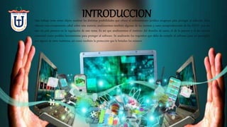 Este documento analiza las distintas formas de protección jurídica del software en Uruguay y otros países como Estados Unidos. Explora el uso del derecho de autor, patentes y secretos comerciales para proteger software. También clasifica los tipos de software y explica la diferencia entre código fuente y código objeto. Finalmente, concluye que aunque no existe un método perfecto, estos institutos jurídicos sirven para otorgar cierta protección al software.
