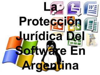 1) El documento describe la protección jurídica del software en Argentina bajo el derecho de autor y las patentes. 2) Se protege desde 1988 y se registra en la Dirección Nacional del Derecho de Autor. 3) También puede ser patentable si aporta una solución técnica a un problema técnico.
