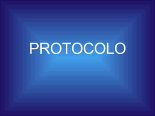 El documento habla sobre el protocolo, que establece el orden de precedencia entre personas y cargos basado en factores como la posición, profesión, edad y estado civil. Explica las normas de precedencia para el gobierno, autoridades eclesiásticas, militares, empresariales y familiares, así como las reglas para la ubicación y desplazamiento de personas en eventos formales de acuerdo a su rango.