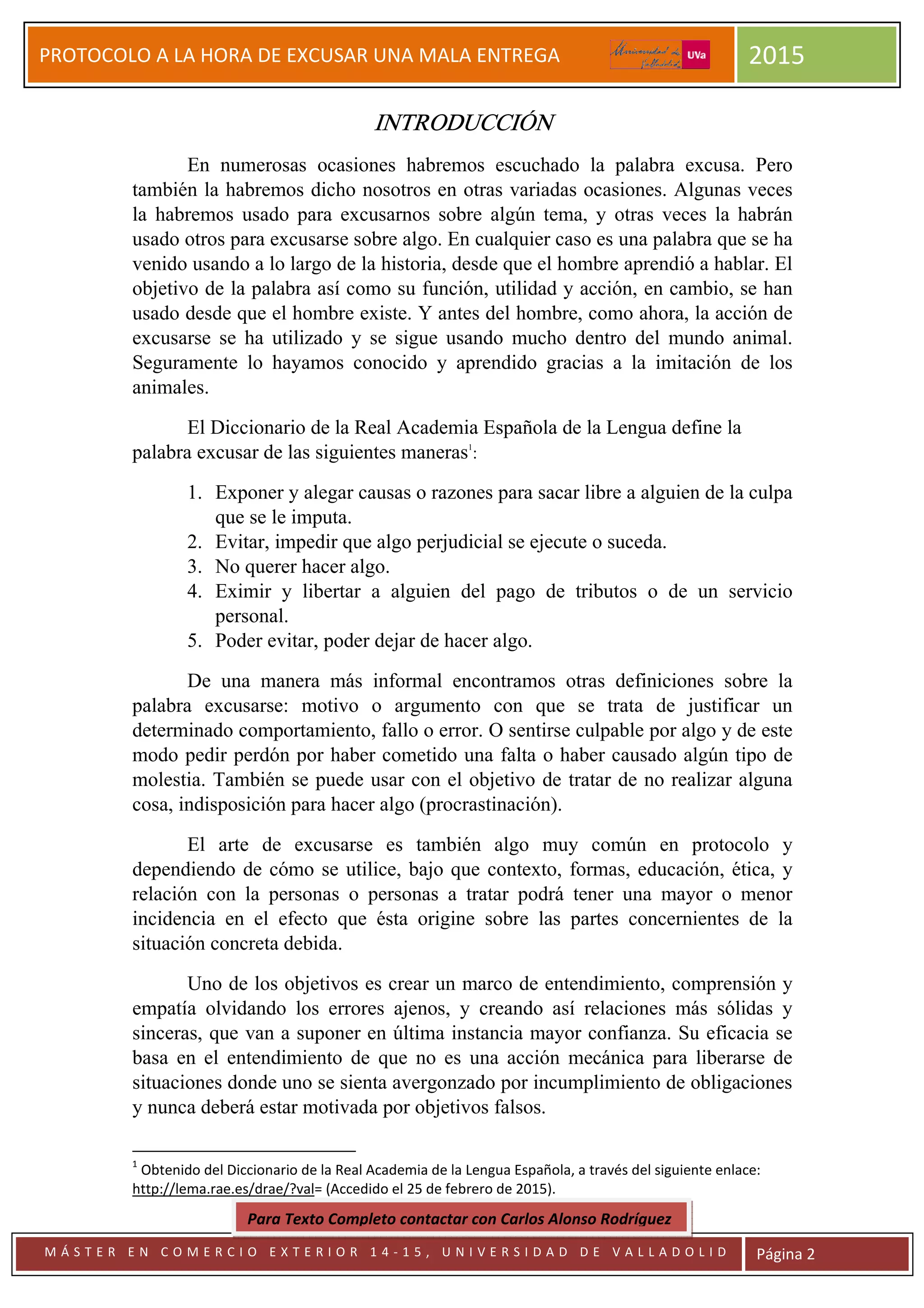 El documento trata sobre la importancia y el uso de la palabra 'excusa', definiéndola y explorando su función en las relaciones humanas y en el contexto de la negociación internacional. Se destaca que excusarse puede ser un arte, influenciado por el contexto y la relación entre las personas, buscando fomentar la comprensión y la empatía. Además, se enfatiza que el objetivo no debe ser liberarse mecánicamente de responsabilidades, sino construir relaciones más sinceras.
