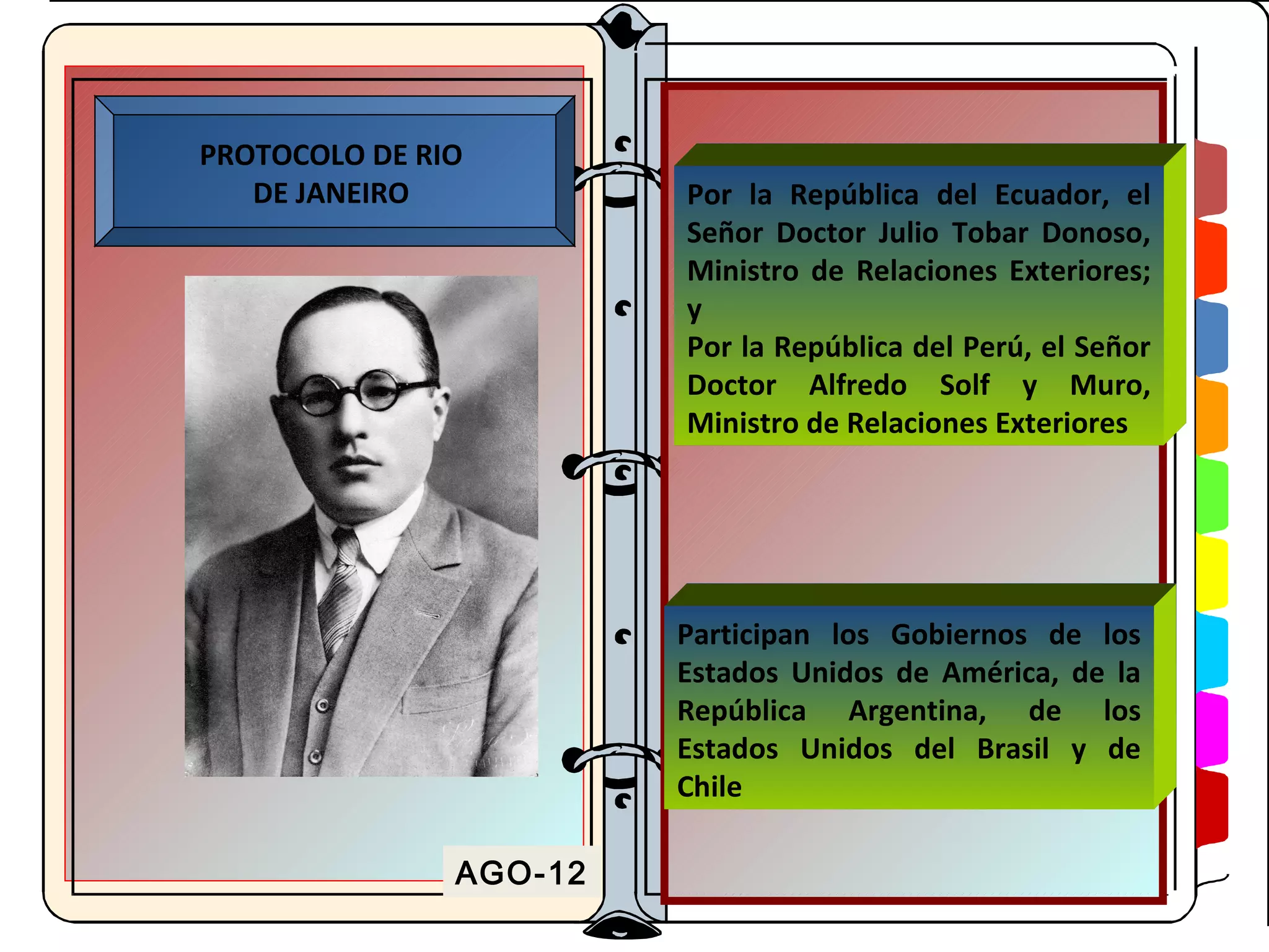 El documento presenta el Protocolo de Río de Janeiro de 1942 firmado entre Ecuador y Perú para establecer la frontera entre los dos países. El protocolo dividió el territorio en disputa aproximadamente a la mitad y estableció 10 puntos de referencia para la frontera. Sin embargo, surgieron discrepancias sobre la demarcación de algunos tramos que llevaron a enfrentamientos armados entre los dos países en 1981 y 1995. Finalmente, en 1995 se firmó el Acuerdo de Itamaraty que resolvió las disputas fronterizas restantes.