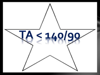 El documento detalla la clasificación y recomendaciones para el tratamiento de la hipertensión arterial, incluyendo niveles de evidencia y sugerencias específicas dependiendo del grado de la hipertensión y condiciones asociadas. Se enfatiza la importancia de cambios en el estilo de vida y las decisiones de tratamiento farmacológico basadas en la evaluación individual del riesgo cardiovascular y la presencia de daño a órganos. Además, se esbozan las características de diferentes clases de medicamentos antihipertensivos y su indicación según la situación clínica del paciente.