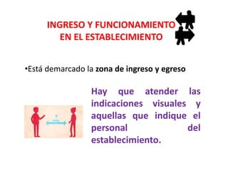 Este documento presenta el protocolo de convivencia, higiene y seguridad para el Jardín maternal municipal n°5 durante la pandemia de COVID-19. Se establecen medidas como el uso obligatorio de barbijo, la desinfección de manos, la prohibición de ingreso de personas con fiebre y la restricción de actividades grupales. El personal seguirá un protocolo de limpieza que incluye alfombras sanitizantes y desinfección de manos. Solo se permitirá el ingreso de los niños y un adulto acompañante, y no se