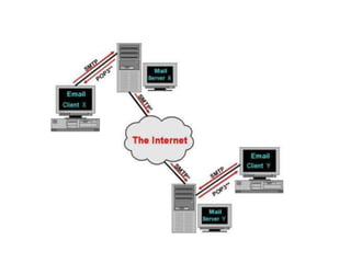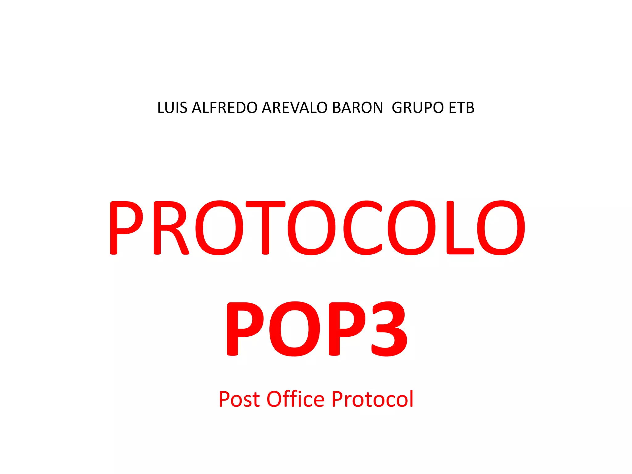 El documento describe el protocolo POP3, que permite a los clientes de correo electrónico comunicarse con servidores de correo para recuperar y enviar correo. POP3 controla la conexión entre el cliente y el servidor y pasa por tres estados: autenticación, transacción y actualización. Permite a los usuarios acceder a su correo almacenado en el servidor desde cualquier lugar.