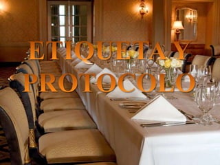 Este documento trata sobre la etiqueta y el protocolo. Explica que la etiqueta consiste en un conjunto de reglas y pasos que deben seguirse tanto en el ámbito profesional como personal para evitar problemas. Incluye ejemplos de cosas que no se deben decir y cómo mantener la etiqueta en eventos formales. También destaca la importancia de reconocer jerarquías, tratar con respeto a las autoridades y cumplir los rituales del ceremonial.
