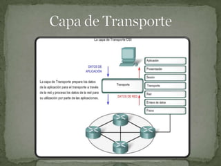 El documento describe la capa de aplicación del modelo OSI, la cual ofrece servicios como correo electrónico, transferencia de archivos y acceso a páginas web a través de protocolos como POP, SMTP, FTP y HTTP. También explica que los usuarios no interactúan directamente con esta capa sino a través de programas que ocultan su complejidad.