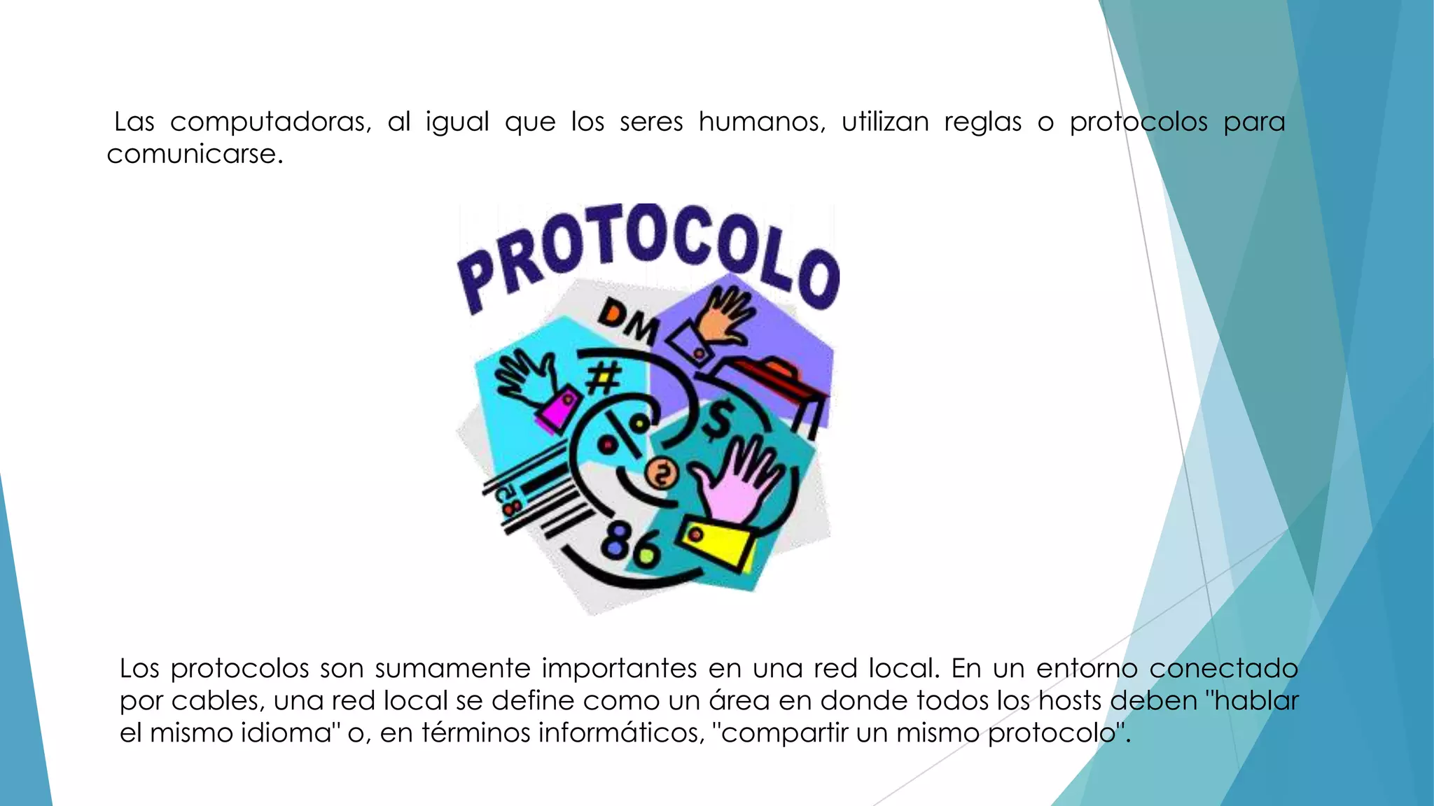 El documento describe diferentes protocolos de comunicación utilizados por las computadoras para comunicarse entre sí a través de redes. Menciona protocolos iniciales como x-módem y y-módem y describe sus características. Luego explica protocolos más modernos y ampliamente utilizados como TCP/IP, HTTP, FTP y SNMP. Finalmente enumera otros protocolos comunes como TFTP, SMTP y ARP.