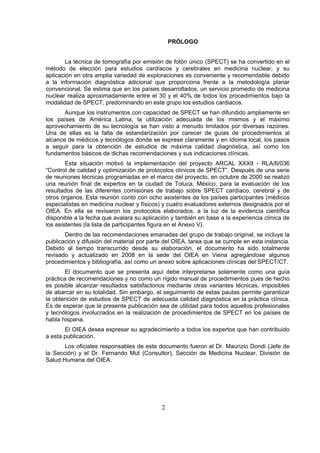 Este documento presenta protocolos clínicos para estudios de SPECT. Incluye 16 protocolos para estudios SPECT de diferentes órganos como cerebro, corazón, paratiroides, huesos, abdomen y pulmones. También incluye consideraciones generales sobre control de calidad en SPECT y procedimientos pre-adquisición. El objetivo es proporcionar guías de procedimientos para optimizar el uso clínico de SPECT en América Latina.
