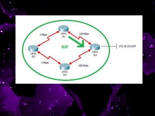 El documento describe los protocolos de enrutamiento RIP y OSPF. RIP es un protocolo de enrutamiento vector distancia que opera en redes pequeñas y medianas, mientras que OSPF es más adecuado para redes grandes debido a que considera múltiples métricas y puede equilibrar cargas. Ambos protocolos actualizan dinámicamente sus tablas de enrutamiento para reflejar cambios en la topología de red.