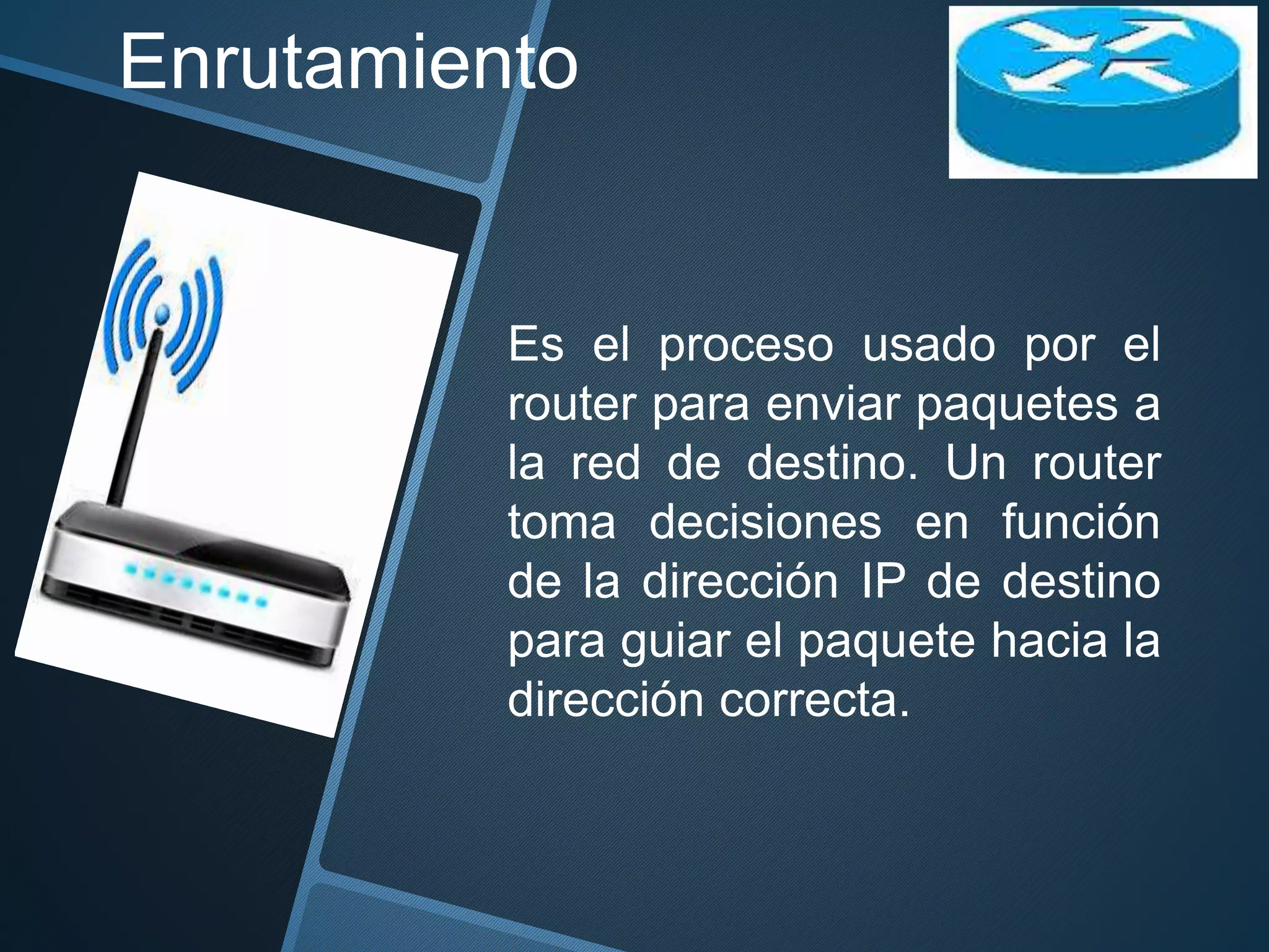 El documento describe diferentes protocolos y tipos de enrutamiento. Explica que el enrutamiento es el proceso mediante el cual los routers envían paquetes a la red de destino utilizando la dirección IP. Describe protocolos de enrutamiento como RIP, IGRP, OSPF, EIGRP y BGP, así como tipos de enrutamiento interior, exterior, estático y dinámico.