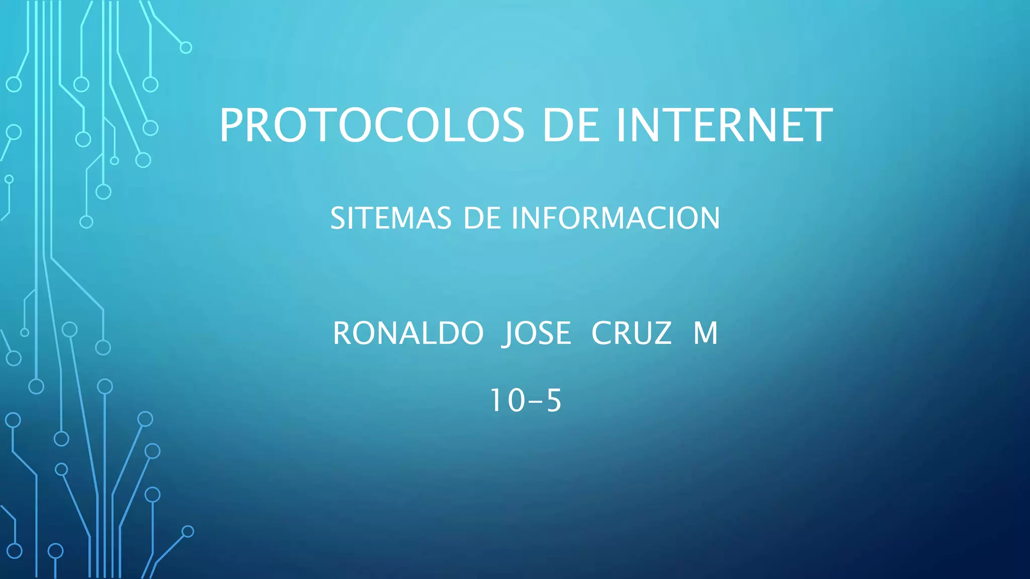 Este documento describe los protocolos de Internet. Explica que un protocolo es un conjunto de reglas que permiten la comunicación entre procesos a través de una red. Define que el protocolo de Internet se basa en TCP/IP, que son los protocolos más importantes y utilizados. Finalmente, enumera algunos tipos de protocolos de Internet como ARP, FTP, HTTP, POP, SMTP y Telnet.