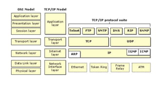 Internet funciona interconectando redes heterogéneas mediante el protocolo TCP/IP. TCP/IP opera en capas superiores a la red física y entre las aplicaciones, permitiendo la comunicación entre sistemas diferentes. El modelo TCP/IP consta de capas para la red física, acceso a la red, transporte y aplicaciones.