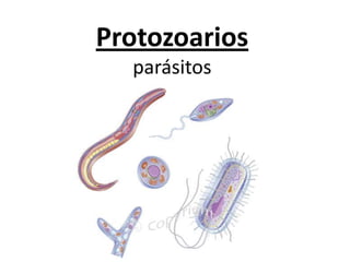 (1) Este documento describe la clasificación taxonómica de varios protozoos parásitos de importancia médica como Entamoeba, Giardia y Plasmodium. (2) Incluye información sobre la morfología y locomoción de estos protozoos parásitos, incluyendo sus flagelos, seudópodos y otros orgánulos. (3) También describe brevemente a otros grupos de parásitos como cestodos, trematodos, nematodos y artrópodos, resaltando su relevancia médica como vect
