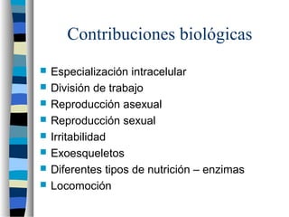 Este documento describe las características y clasificación de los protozoarios. Los protozoarios son unicelulares o coloniales, microscópicos, y presentan diferentes formas de locomoción, nutrición y reproducción. Se clasifican en filos como Ciliophora, Apicomplexa, Euglenozoa y otros, que incluyen parásitos importantes y organismos fotosintéticos.