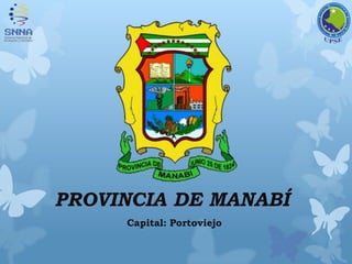 La provincia de Manabí se encuentra en la costa del Ecuador. Su capital es Portoviejo. Limita al norte con Esmeraldas, al sur con Santa Elena y Guayas, y al este con Guayas, Los Ríos y Santo Domingo de los Tsáchilas. El nombre Manabí proviene de una tribu aborigen que habitaba la región antes de la llegada de los conquistadores españoles. La provincia tiene pocas elevaciones y sus principales ríos incluyen el Chone y el Portoviejo. Platos típicos de Manab