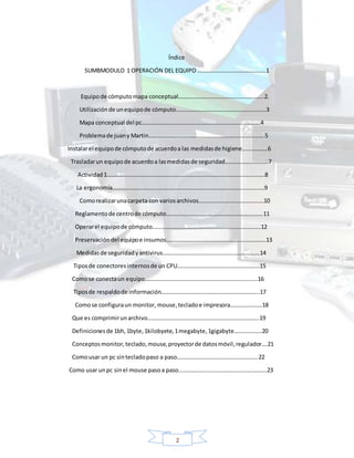 La ergonomía se refiere al diseño del equipo de cómputo y el mobiliario para promover la comodidad y prevenir lesiones. Un equipo de cómputo ergonómico incluye una silla ajustable, un escritorio a la altura adecuada y accesorios como teclado y mouse separados para mantener una postura correcta.