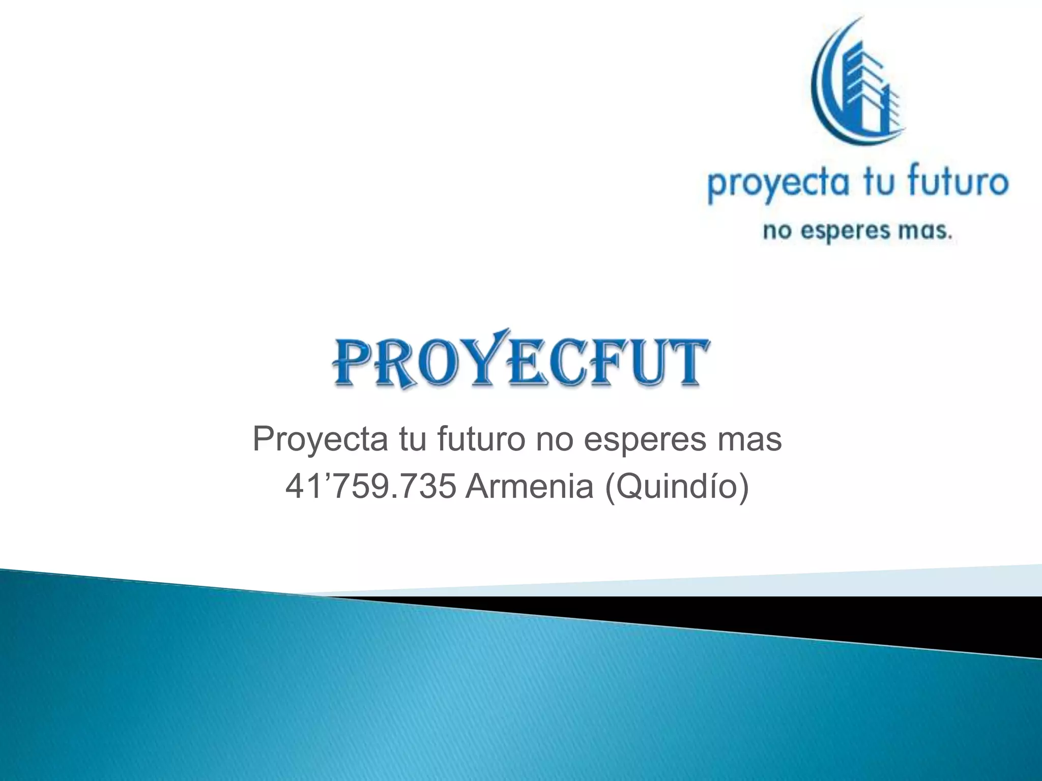 El documento describe tres opciones de vivienda en Armenia, Quindío, Colombia, incluyendo una casa para 3 personas por $45.35 millones, una casa más grande para 8 personas por $70.5 millones, y un apartamento de 4 personas con piscina por $170.25 millones. El documento finaliza invitando al lector a comunicarse para más detalles y recordando el lema de "proyectar el futuro sin esperar más".