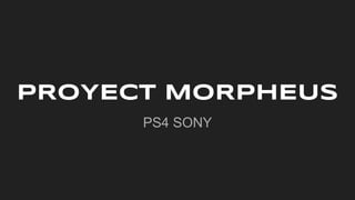 El documento habla sobre el Proyecto Morpheus, el dispositivo de realidad virtual que Sony reveló en la Game Developers Conference. Morpheus es el nombre completo del casco VR ligero y cómodo que ofrece una visión de alta resolución y permite jugar y experimentar demos a través de los controles DualShock y Move.