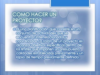 Microsoft Project es un software de administración de proyectos que ayuda a los administradores a planificar proyectos mediante el desarrollo de planes, la asignación de recursos a tareas, el seguimiento del progreso, la administración del presupuesto y el análisis de cargas de trabajo.