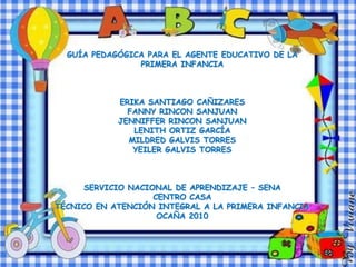 Este documento presenta una guía pedagógica para agentes educativos de la primera infancia con el fin de explorar el entorno. Incluye temáticas con propósitos, competencias, actividades y recursos didácticos. Justifica la necesidad de que los agentes educativos estén preparados para responder a los cambios en la sociedad y validar teorías a través de la experiencia en hogares comunitarios. Propone métodos pedagógicos como aprendizaje cooperativo, estilos de aprendizaje e inductivos, constructivistas y no directivos consider