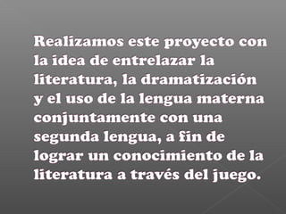 Este documento describe un proyecto para enseñar la obra de teatro Romeo y Julieta a estudiantes de inglés utilizando redes sociales y plataformas en línea. El proyecto usaría Facebook, Twitter y YouTube para que los estudiantes compartan información y debatan sobre la obra. Los estudiantes aprenderían sobre la época medieval y representarían pasajes de la obra antes de ponerla en escena al final de las 8 semanas.