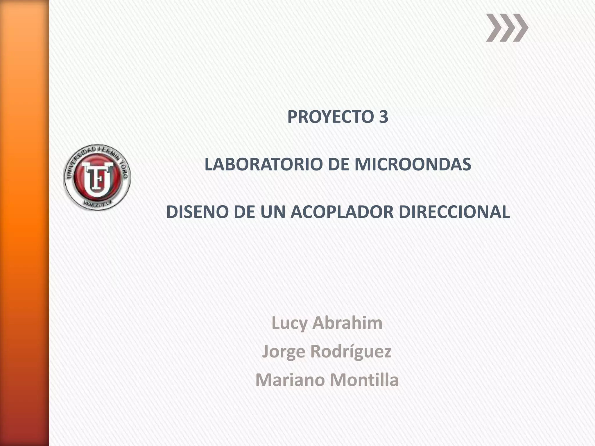 El documento describe el diseño de un acoplador direccional usando software de microondas. Explica que un acoplador direccional permite separar ondas incidentes y reflejadas en una línea de transmisión hacia otro puerto usando dos líneas de transmisión acopladas. Luego detalla el diseño realizado, incluyendo parámetros, gráficas y diagrama del acoplador, concluyendo que se pudo ver la transferencia de potencia y separación de ondas incidentes y reflejadas según la frecuencia.