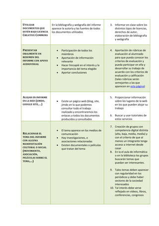 Este documento propone una estrategia para desarrollar y utilizar el entorno personal de aprendizaje (PLE) del alumnado a lo largo de un curso. El plan consiste en elaborar un informe sobre un tema científico actual trabajando en grupos. Los objetivos son mejorar el interés del alumnado por la actualidad y enseñarles a usar las TIC de forma efectiva como herramienta de trabajo. El plan detalla objetivos, indicadores, actividades y recursos para llevar a cabo el proyecto.