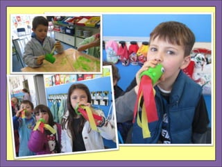 El documento describe un viaje realizado por un grupo de profesores y alumnos de infantil para visitar las Siete Maravillas del Mundo. El grupo aprendió sobre cada maravilla a través de actividades como canciones, talleres, películas y comida típica del país correspondiente. Los niños completaron pasaportes y recuerdan el viaje como una experiencia inolvidable llena de aprendizaje.
