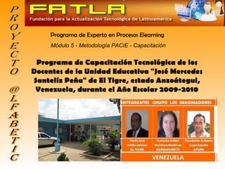 Este documento presenta una propuesta para un programa de capacitación en el uso de TIC para docentes de la Unidad Educativa "José Mercedes Santelíz Peña" en Venezuela. El programa incluye un diagnóstico inicial, diseño de la propuesta y plan de capacitación con módulos sobre herramientas TIC. El objetivo es que los docentes adquieran habilidades para utilizar efectivamente las TIC como estrategia educativa.