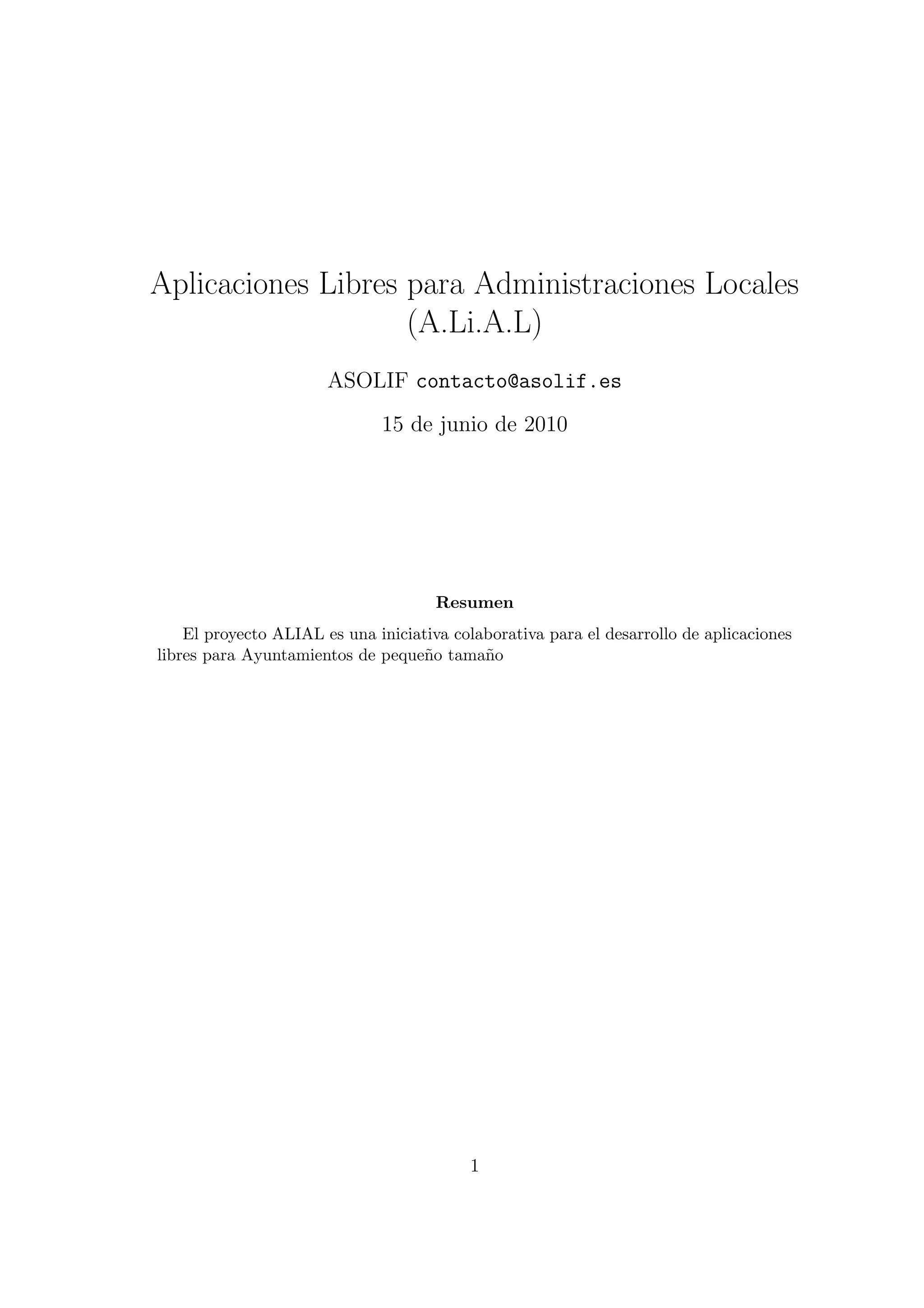 El documento describe el proyecto ALIAL, una iniciativa para desarrollar aplicaciones libres para ayuntamientos pequeños. ALIAL tiene como objetivos promover el desarrollo y compartición de recursos entre administraciones locales, asegurar la interoperabilidad de las soluciones y reducir costes. Actualmente se está desarrollando la guía ALIAL, el convenio y el catálogo de soluciones, y varios módulos ya están en su primera fase de desarrollo.