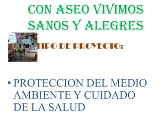 Este documento presenta un proyecto escolar de la Escuela Fiscal "Secundino Chamorro" en San Gabriel, Ecuador. El proyecto busca mejorar la higiene y el cuidado del medio ambiente a través de actividades escolares y comunitarias para promover hábitos de aseo. El proyecto involucra a estudiantes, padres y la comunidad local en campañas y acciones prácticas de limpieza durante un período de dos meses.