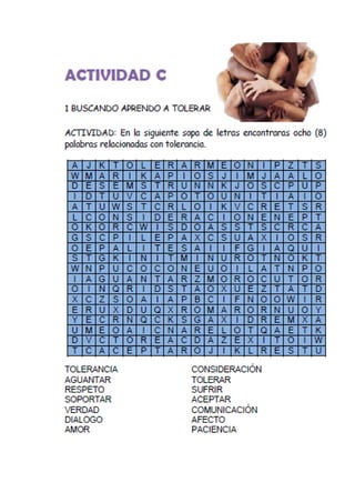 Este documento describe el diseño de una cartilla didáctica utilizando herramientas TIC para enseñar valores como el respeto, el diálogo, la igualdad y la tolerancia a estudiantes de primaria. El autor identificó una falta de respeto y diálogo entre los estudiantes que afectaba las relaciones. La cartilla busca mejorar el comportamiento de los estudiantes y formar ciudadanos competentes mediante actividades lúdicas que enseñan valores. El proyecto sigue una metodología de investigación-acción participativa y propone