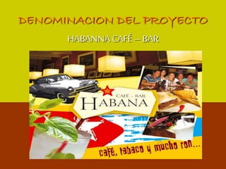 Este documento presenta un proyecto para abrir un café-bar llamado Habana en la ciudad de Ibarra, Ecuador. El café-bar se ubicará en una zona turística del centro de la ciudad. El proyecto busca satisfacer las necesidades de entretenimiento de la población local y turistas mediante la oferta de comida, bebidas y música en vivo en un ambiente tropical. Los objetivos incluyen posicionarse como el mejor café-bar de la ciudad y recuperar la inversión inicial en menos de seis meses.