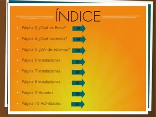 La beca es un proyecto que ofrece oportunidades educativas a adolescentes con recursos limitados y buenas calificaciones, permitiéndoles estudiar en el extranjero y vivir con familias seleccionadas. La sede principal está en Valencia, España, y tienen presencia en múltiples continentes. El programa incluye clases de inglés, actividades culturales y excursiones para enriquecer la experiencia de los estudiantes.