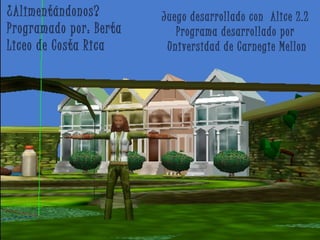 El documento presenta un juego desarrollado en Alice sobre los alimentos transgénicos. Los principales aprendizajes fueron que algunos alimentos dañan nuestro organismo a largo plazo y debemos tener cuidado con lo que come nuestra familia. También aprendieron que algunas empresas se enfocan más en ganancias que en la calidad de sus productos. El aspecto más difícil fue seguir el orden de los procesos, pero practicando varias veces pudieron dominar los conocimientos para transmitirlos fácilmente. La revolución biotecnoló