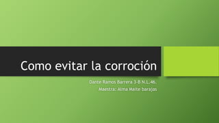 El documento habla sobre varios métodos para evitar la corrosión, incluyendo recubrir metales con zinc, plásticos o pinturas especiales, y usar ánodos de zinc. También describe experimentos para medir el pH de sustancias y observar cómo el vinagre oxida más una fibra de metal que el agua salada o normal.