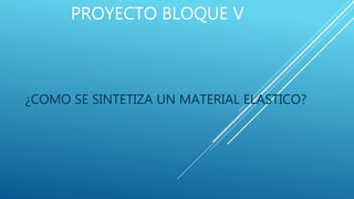 El documento describe cómo se sintetizan los materiales elásticos a través de la polimerización. Explica que los polímeros son macromoléculas formadas por la unión de moléculas más pequeñas llamadas monómeros. Luego detalla un procedimiento para elaborar un material elástico mezclando bórax, agua, alcohol y colorante, formando una pelota que se estira y vuelve a su forma original. El objetivo es que los estudiantes aprendan sobre la composición y fabricación de polímeros elásticos.
