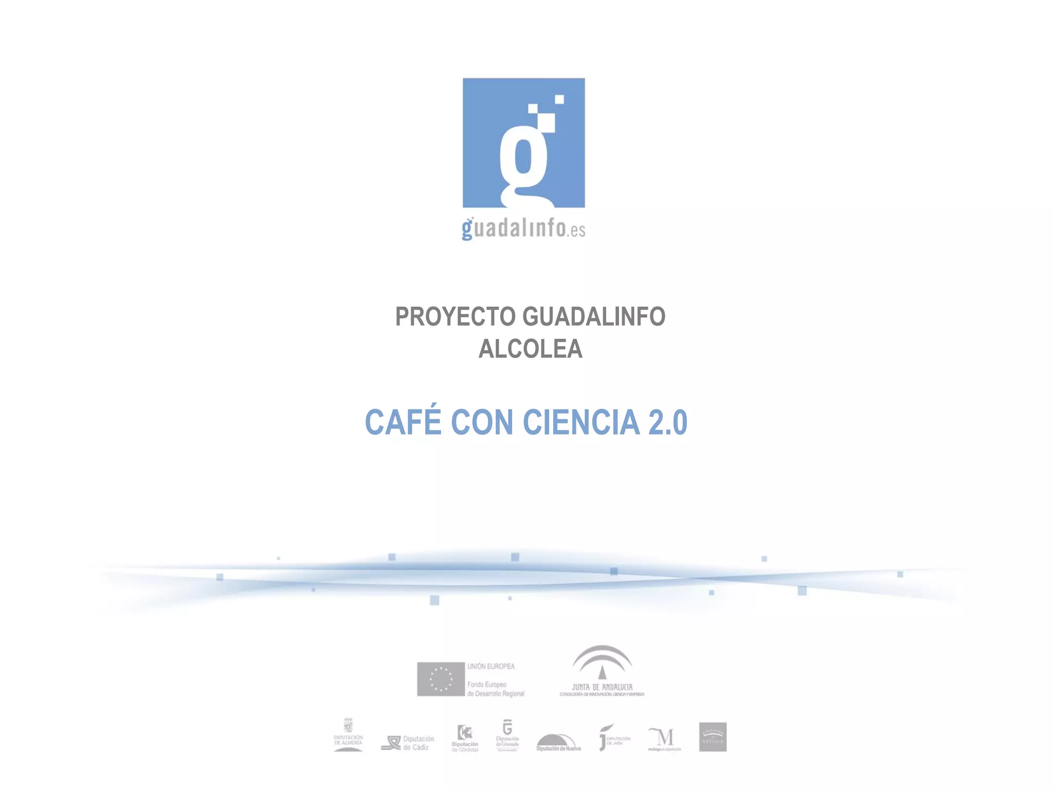 Este documento describe un proyecto llamado Café con Ciencia 2.0 que organizará conferencias de divulgación científica en 4 centros Guadalinfo y las transmitirá en vivo para toda la ciudadanía. Los temas incluyen biomedicina, astronomía, energías renovables e inteligencia artificial. El objetivo es difundir el conocimiento científico de manera accesible para todas las zonas y generar conversación a través de las redes sociales.
