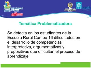 Este documento presenta un proyecto para desarrollar habilidades básicas en estudiantes a través del uso de las TIC. El proyecto busca mejorar las competencias interpretativas, argumentativas y propositivas mediante actividades lúdicas con tecnología. El proyecto incluye narrar cuentos, dramatizar textos, festivales de cuento y actividades de interacción, evaluando la fluidez verbal, producción de textos y manejo básico de TIC.