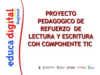 Este documento presenta un proyecto pedagógico para mejorar los procesos de lectura y escritura en grados preescolar a noveno en el Centro Educativo Bellavista en Pelaya, Cesar, Colombia. El proyecto propone utilizar actividades de aula con componentes TIC como talleres de literatura, lectura oral diaria, lectura silenciosa, correo electrónico y periódico escolar interactivo para estimular la creatividad y el interés por el aprendizaje. La metodología se fundamenta en tres etapas del apre