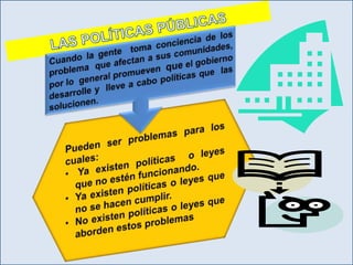 Este documento presenta una propuesta metodológica para desarrollar el Proyecto Ciudadano en el aula. El Proyecto Ciudadano implica la identificación de un problema público, la investigación de políticas existentes, la propuesta de alternativas y la elaboración de un plan de acción. Se enfoca en desarrollar habilidades ciudadanas en los estudiantes a través de cuatro pasos y tres enfoques temáticos como derechos humanos, género y democracia.