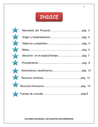Este proyecto tiene como objetivo que los niños de 3er grado recreen sus cuentos favoritos para mejorar su expresión escrita. A lo largo de una semana, los niños elegirán un cuento, crearán su propia versión escrita y la ilustrarán. Al final, reunirán sus cuentos en una antología que donarán a la biblioteca escolar.