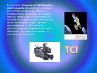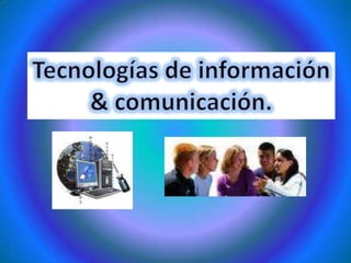 Las Tecnologías de la Información y Comunicación (TIC) permiten adquirir, procesar, almacenar, comunicar e intercambiar información. Incluyen la electrónica, las telecomunicaciones, la informática y el audiovisual. Son esenciales para los sistemas políticos, económicos y los estilos de vida cotidianos. La Internet ha tenido un explosivo desarrollo y permite comunicación en tiempo real las 24 horas. Las TIC ofrecen aplicaciones multimedia e interactividad entre usuarios.