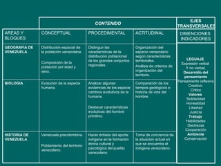 El documento presenta un proyecto educativo sobre Venezuela y sus raíces. El proyecto abarca contenidos de historia, biología y geografía de Venezuela, con énfasis en la población indígena y la distribución espacial de la población actual. El proyecto utilizará diversas actividades como observación de mapas y fotografías, discusión en grupos pequeños, y elaboración de mapas y conclusiones para analizar la evolución humana y la organización territorial de Venezuela.