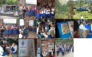 Este documento presenta un proyecto pedagógico llamado "Colorín" que busca mejorar la comprensión lectora de los estudiantes mediante el desarrollo de su creatividad e implementación de las TIC. El proyecto diagnostica debilidades en lectura, propone objetivos como aplicar la lectura como placer e implementar sitios web, y describe una metodología donde los estudiantes dejan volar su imaginación y plasman sus creaciones digitalmente.