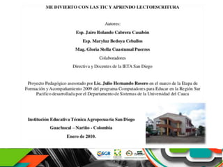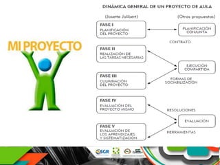 Este documento describe los componentes y fases clave de un proyecto de aula, incluyendo la planificación, ejecución y evaluación. Explica que un proyecto de aula surge de preguntas o intereses de los estudiantes, luego pasa por fases de planificación, ejecución y evaluación. La planificación incluye definir el propósito, actividades, recursos, responsabilidades y lugar, mientras que la evaluación analiza logros, dificultades y participación para mejorar el aprendizaje.
