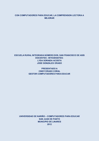 El documento describe un proyecto para mejorar la comprensión lectora en estudiantes de cuarto y quinto grado mediante el uso de las TIC. El proyecto busca despertar el interés de los estudiantes por la lectura y mejorar sus habilidades de comprensión, análisis e interpretación de textos integrando herramientas tecnológicas en el proceso de enseñanza y aprendizaje.