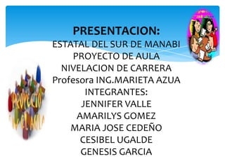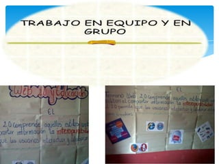 Este proyecto de aula trata sobre el uso de las TIC y la Web 2.0 y su influencia en el proceso de enseñanza-aprendizaje. El objetivo general es impulsar el uso de las TIC para dinamizar el proceso, mientras que los objetivos específicos son determinar las herramientas tecnológicas utilizadas en el aula y establecer los factores que influyen en la enseñanza y el aprendizaje. El marco teórico analiza conceptos clave como las TIC, su importancia en la educación