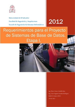 Este documento presenta los requisitos para el proyecto de modelado de base de datos de primer año. Los objetivos generales son desarrollar un modelo de base de datos relacional y analizar las entidades, relaciones y atributos de acuerdo al sistema asignado. Se debe incluir un modelo de negocios, diagrama entidad-relación, modelo físico de base de datos y script de base de datos. El informe debe contener portada, índice, objetivos, alcances, diagramas y conclusiones. La entrega incluye un informe impreso y en CD