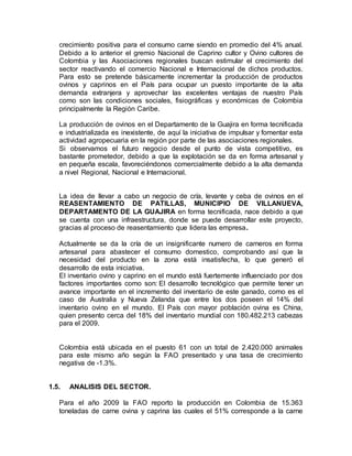La empresa se dedicará a la cría y levante de carneros de la raza Dorfer f1 en Villanueva, Guajira, con el objetivo de satisfacer la demanda regional de carne ovina. La empresa producirá 14,121 kg de carneros en el primer año a través de la cría de 200 animales y los venderá a $2,500/kg en pie para generar 10 empleos y mejorar los ingresos de las familias locales. La empresa ofrecerá un producto de alta calidad que cumpla con los estándares sanitarios para competir